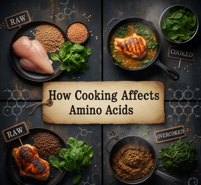 Amino acids are transformed in complex ways by cooking. Certain alterations assist your body in getting and utilizing these protein building blocks in a simpler way. Other changes weaken or ruin some amino acids, especially when you have to use a lot of heat.