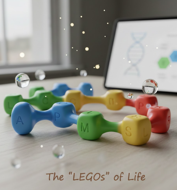 - Amino acids = bricks 🧱