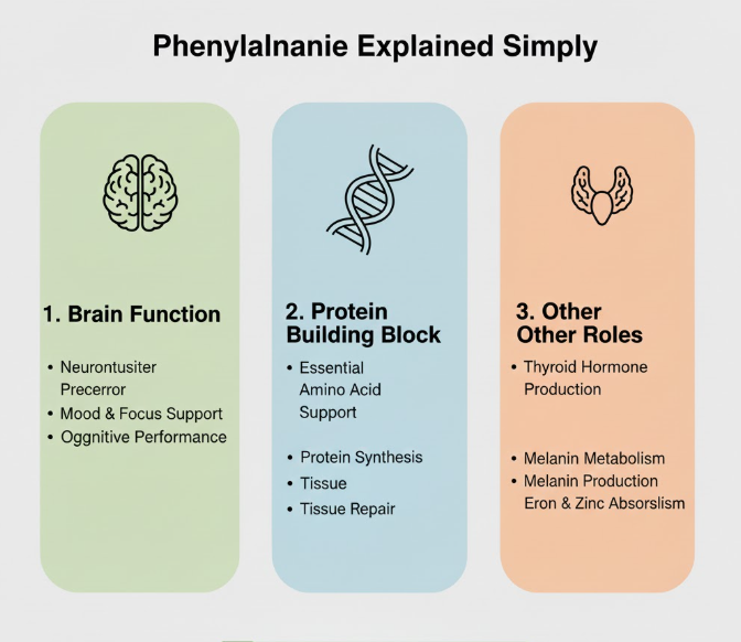 Your body is unable to produce and repair these important structures without having sufficient amounts of phenylalanine.